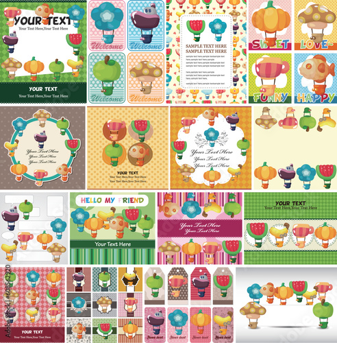 Векторный набор открыток, подарочных бирок, партийных вымпелов, листов блокнота с милыми кактусами и вдохновляющими цитатами. Цветущие мультяшные кактусы со смешными рожицами в горшках на цветном фоне с точками, сердечками, звездами