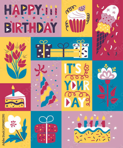 Векторный набор открыток со сладкими конфетами и вдохновляющими цитатами о жизни и доме. Конфеты, леденцы на палочке, леденцовые палочки, сладкие домики.