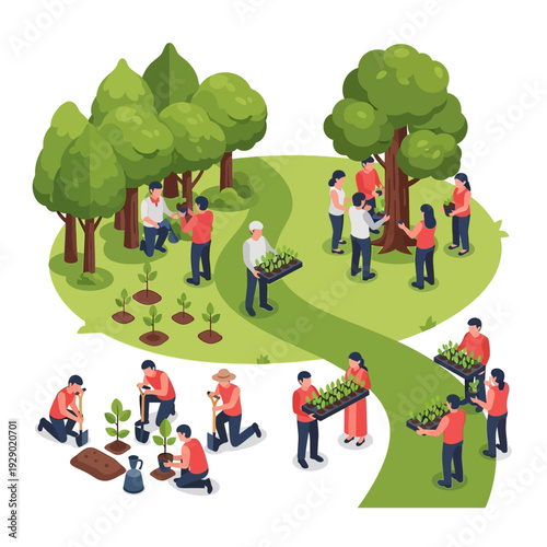 Векторный набор плакатов с мультяшными персонажами. Люди в парке элементы дизайна и иконки в плоском стиле. Бегать, гулять с семьей, выгуливать собак, читать книги, сидеть на скамейке.