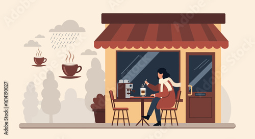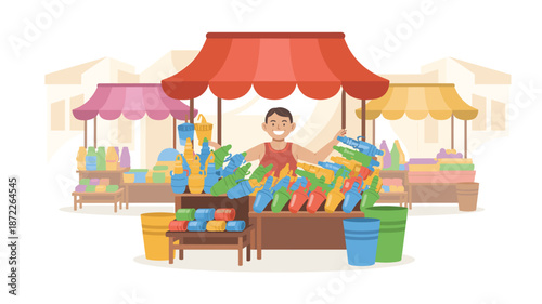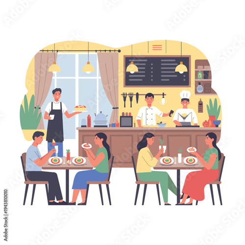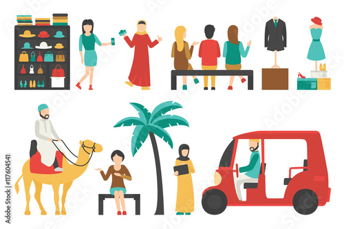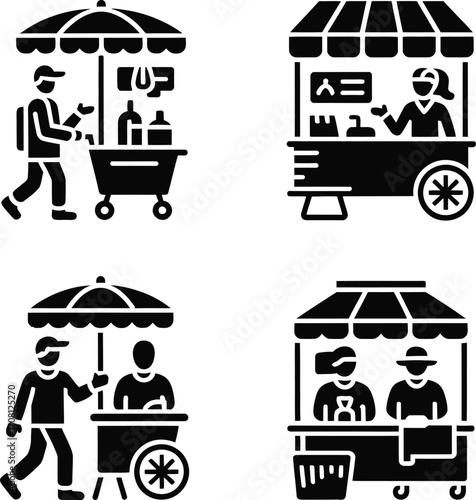 Векторный набор мультяшных персонажей и киосков с уличной едой, изолированных на белом фоне. Концепция уличного кафе.