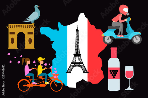 Векторный набор китайских персонажей с драконом, женщиной в кимоно, пандой и китайским домом. Иллюстрация с изолированными предметами из Китая.
