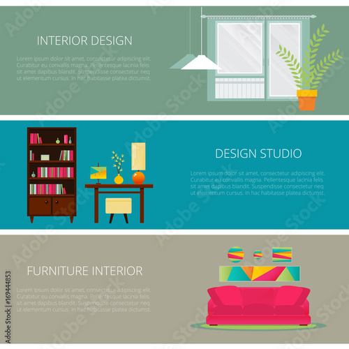 Векторный набор горизонтальных баннеров концепции клининговой службы в плоском стиле. Клининговая компания, Уборка в коттедже и элементы дизайна инструментов для уборки.
