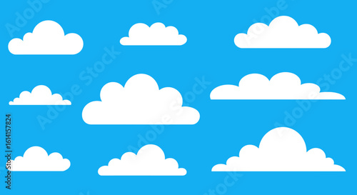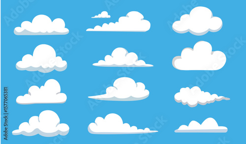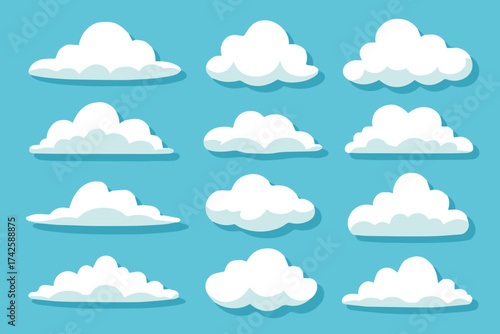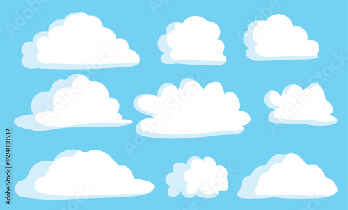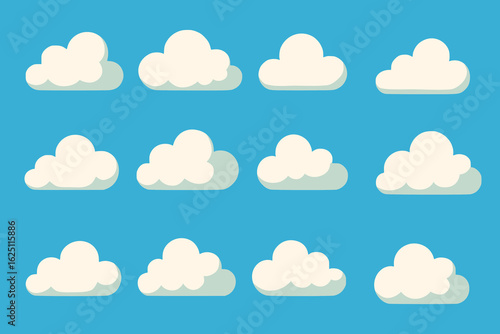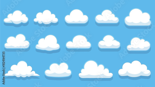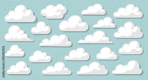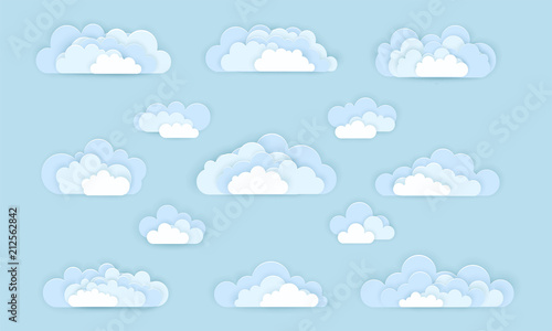 Векторный набор облачных иконок в стиле бумажного искусства. Знаки облака, изолированные на заднем плане. Дизайн вырезки из бумаги оригами