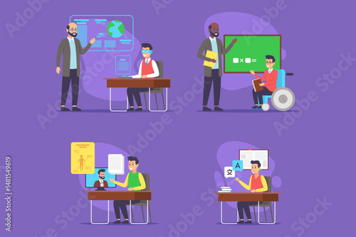 Векторный набор концептуальных плакатов кофейни, баннеров. Бариста, Меню, Кофейня и элементы дизайна Coffee to go в плоском стиле.