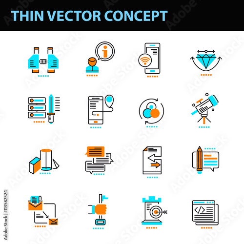 Векторный набор компьютерных аппаратных устройств и иконок кинопроизводства в стиле тонкой линии. Пользовательский интерфейс веб-сайта и значок мобильного веб-приложения. Иллюстрация контурного дизайна