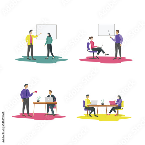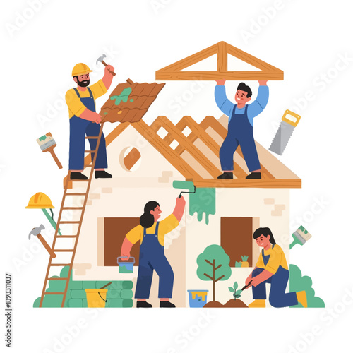 Векторный набор строительных рабочих, изолированных на белом фоне. Люди, работающие на стройке, ремонтируют квартиру. Элементы дизайна в плоском стиле, иконки.
