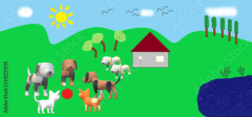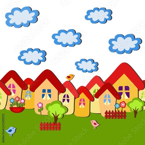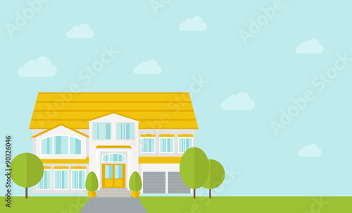 Векторный набор сельской местности, фонов сельской сцены, плакатов, баннеров в плоском стиле. Фруктовый и огородный сад, загородный дом, коттедж, домашние животные.