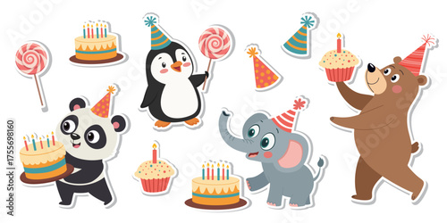 Набор пиратских значков. Векторная иллюстрация милых животных панды, енота, лисы в пиратских шляпах, корабля с пиратскими флагами, медузы с повязкой на глазу и других морских предметов, изолированных на белом фоне.