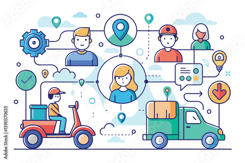 Векторный набор плакатов с доставкой. Доставка воды, пиццы, доставка цветов и доставка еды элементы дизайна в плоском стиле.