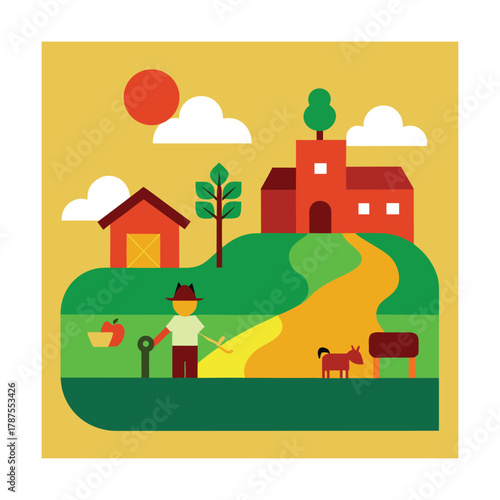 Векторный набор земледелия и скотоводства, пчеловодства, сбора урожая. Деревенская жизнь и работа. Плоский дизайн.