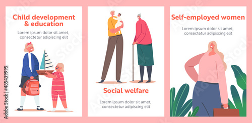 Векторный набор квадратных плакатов модного ателье. Элементы концептуального дизайна костюма из манекена, ткани, вышивки и шитья в плоском стиле.