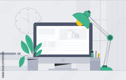 Векторный набор модных интерьерных плакатов, баннеров. Элементы дизайна в плоском стиле для подиума, фотографического и осветительного оборудования.