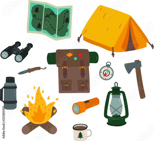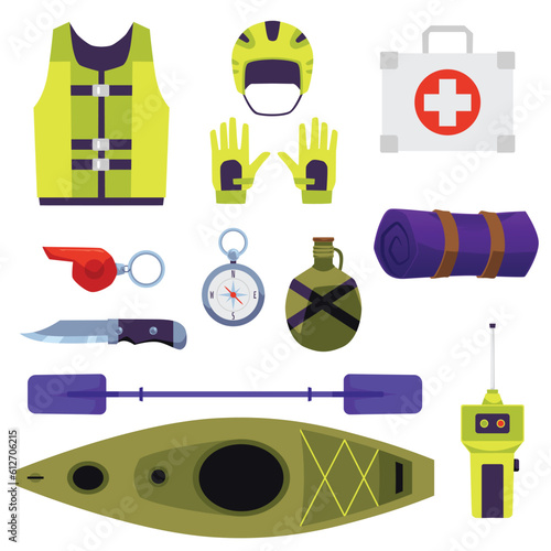 Векторный набор значков рыболовного снаряжения, изолированных на белом фоне. Элементы дизайна в плоском стиле.