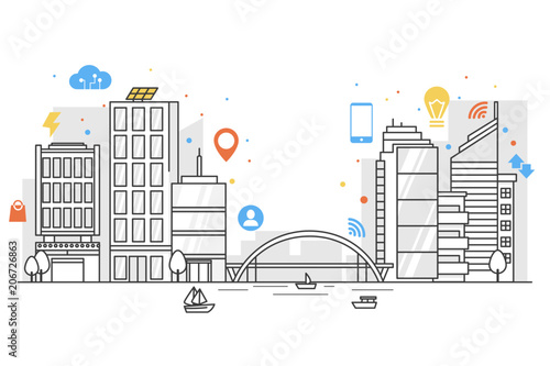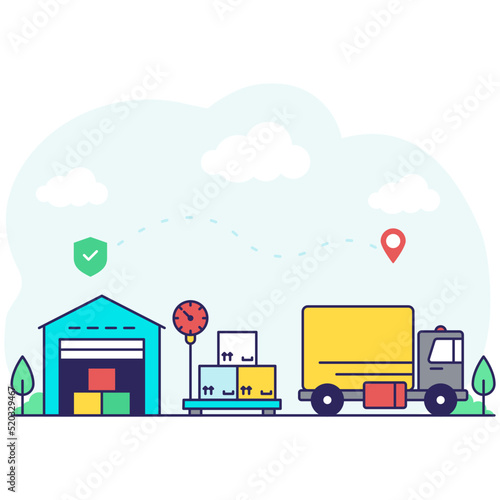 Векторный набор плакатов с доставкой еды, баннеров. Курьеры, доставляющие еду, цветы и посылки на велосипеде, грузовике и мотороллере. Городская улица. Дизайн в плоском стиле.