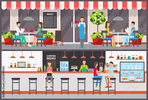 Векторный набор плакатов тренажерного зала, баннеров с фитнес-людьми, мужчинами и женщинами, выполняющими упражнения со штангой, гантелями, используя тренажер для жима ногами, беговую дорожку. Концепция оборудования для тренажерного зала дизайн в плоском стиле.