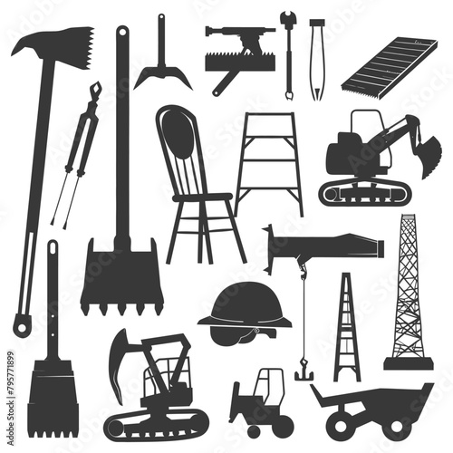 Векторный набор парикмахерских объектов и инструментов, изолированных на белом фоне. Значки оборудования парикмахерской, фен для волос, фен, расческа, ножницы.