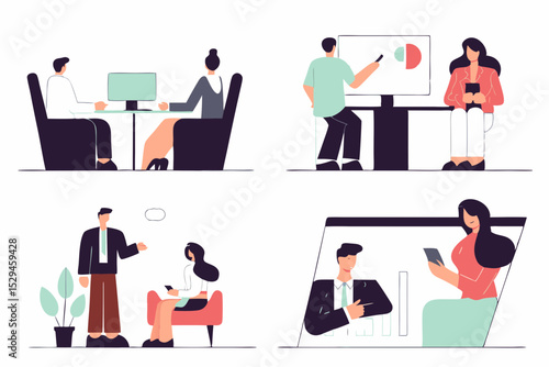 Векторный набор постеров парикмахерской и тату-салона. Окрашивание волос, прически, стрижки и выберите элементы дизайна плоского стиля татуировки.