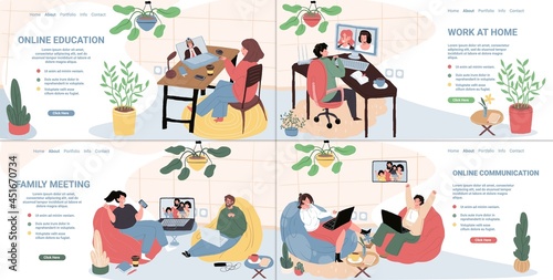 Векторный набор плакатов для домашней кухни в мультяшном рисованном стиле. Семья завтракает дома на кухне. Уютный интерьер дома. Плакат с бытовой утварью, посудой, кухонными приборами.