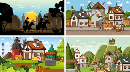 Векторный набор баннеров с концепцией верховой езды, укрощения лошадей и сельского хозяйства, плакаты, плоский стиль.