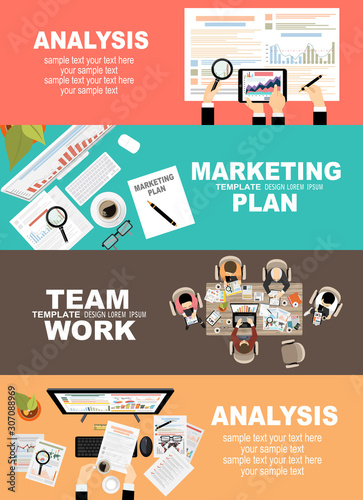 Векторный набор горизонтальных баннеров отеля. Уборка каждый день, Комфортабельные номера и посещение нашего отеля с элементами дизайна в плоском стиле.