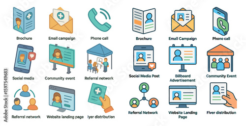 Векторный набор иконок интернет-сервисов в стиле тонкой линии. Кибербезопасность, электронная почта и социальные сети. Пользовательский интерфейс веб-сайта и значок мобильного веб-приложения.