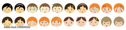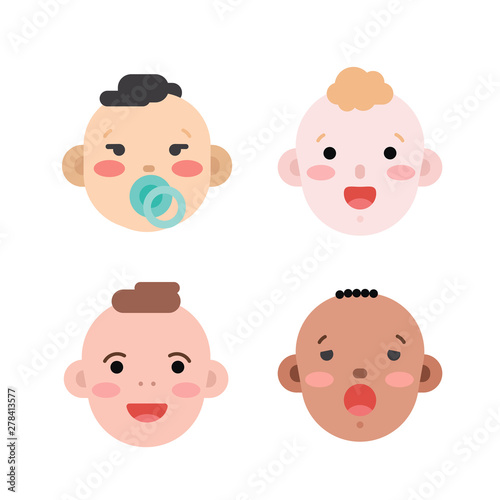 Векторный набор лиц маленьких мальчиков с различными видами выражения лица. Улыбающиеся, спокойные, изумленные лица с высунутыми языками. Элементы концептуального дизайна чувств и эмоций.