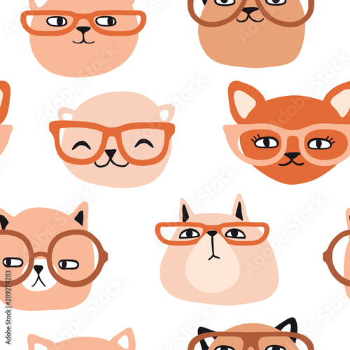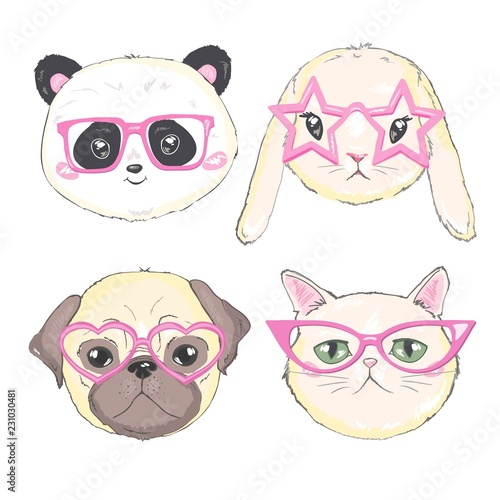 Векторный набор лиц маленьких девочек с различными видами выражения лица. Смеющиеся, улыбающиеся, спокойные, испуганные лица. Девушка в очках. Элементы концептуального дизайна чувств и эмоций.