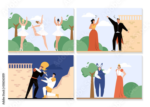 Векторный набор боевых искусств. Кендо, кудо, айкидо и кикбоксинг. Бойцы на спортивных позициях.Плоский дизайн.