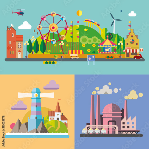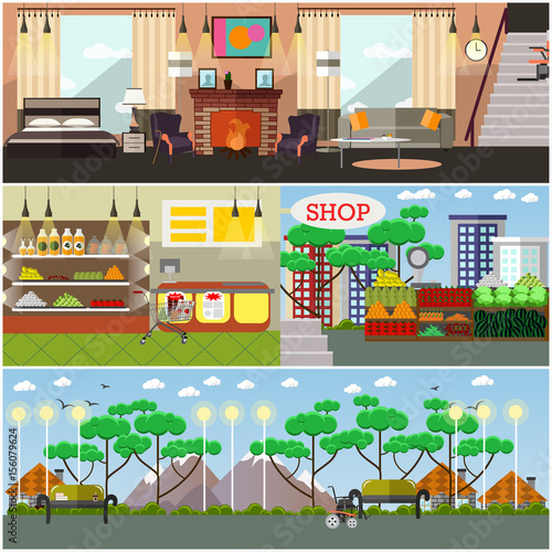Векторный набор плакатов, баннеров для интерьера роддома и детского сада. Элементы дизайна в плоском стиле.