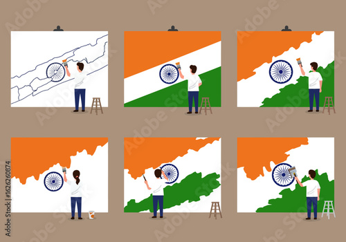 Векторный набор военных квадратных плакатов. Элементы дизайна в армейском, парадном, траншейном и тренировочном плоском стиле.