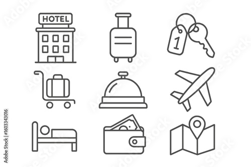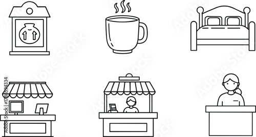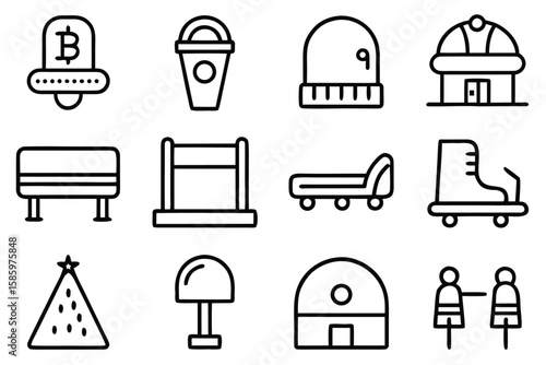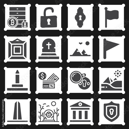 Векторный набор музейных изолированных значков. Черно-белая музейная символика и элементы дизайна. Искусство, статуя, здание музея, билет.