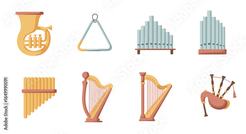 Векторный набор музыкальных инструментов в плоском стиле. Элементы дизайна и музыкальные иконки, изолированные на белом фоне.