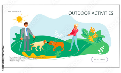 Векторный набор людей в концептуальных баннерах парка. Бег, выгул собак, езда на велосипеде. Векторная иллюстрация в плоском стиле дизайна.