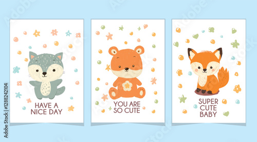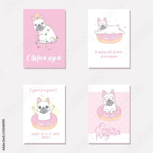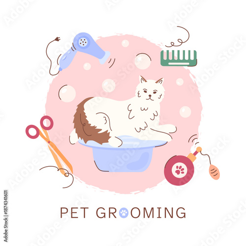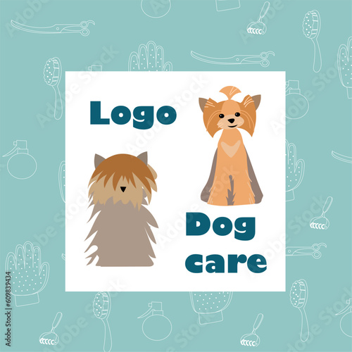 Векторный набор карточек для ухода за домашними животными, листовок, плакатов с милыми собаками, принимающими ванну, стригущимися, аксессуарами для ухода за животными. Услуги по уходу за собаками и расходные материалы рекламные баннеры.