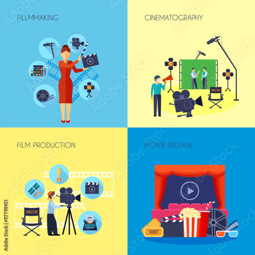 Векторный набор концептуальных плакатов с фотографиями и видео, баннеров. Актер, Фотосъемка, Видеооператор, Элементы дизайна интервью в плоском стиле.