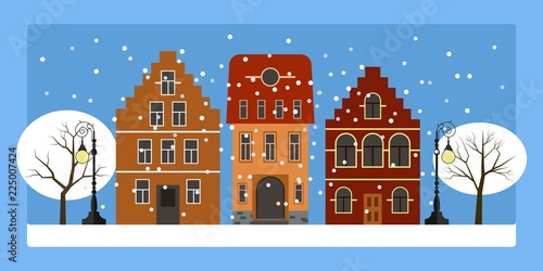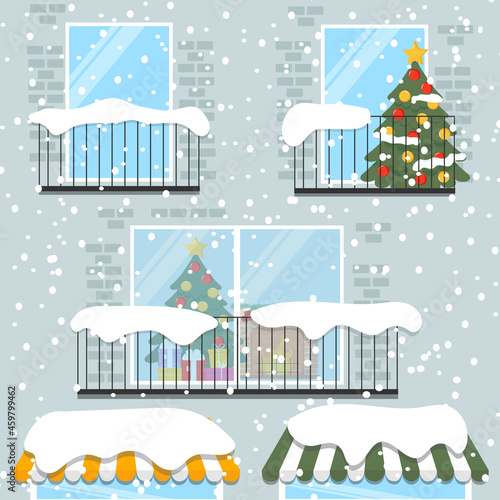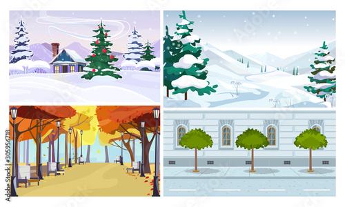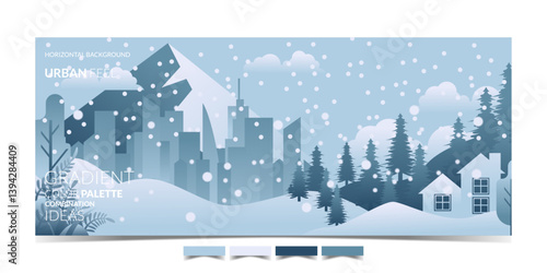 Векторный набор зимнего городского пейзажа с катком, горным пейзажем и кафе на фоне гор. Зимняя природа и места для зимних видов спорта и отдыха элементы концептуального дизайна в плоском стиле