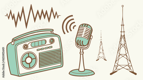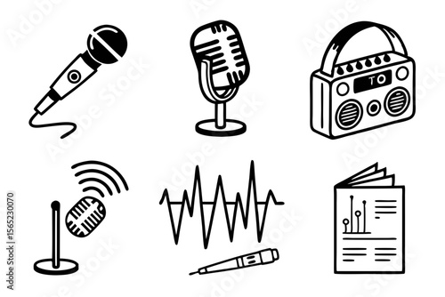 Векторный набор радио- и музыкальных лейблов в винтажном стиле, изолированных на белом фоне. Элементы дизайна и иконки