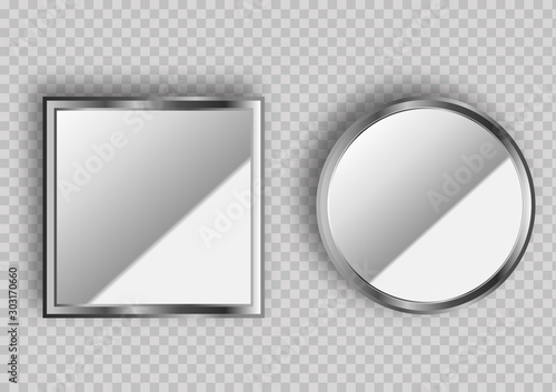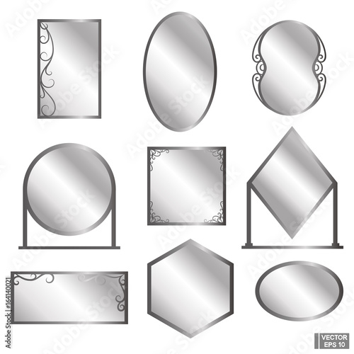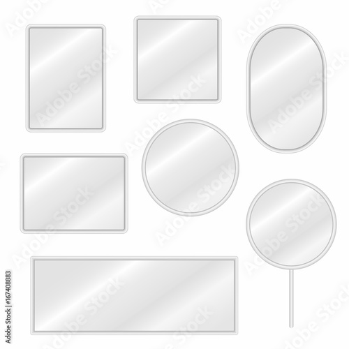 Векторный набор реалистичных 3d-зеркал, изолированных на белом фоне. Внутренняя мебель. Настенные зеркала