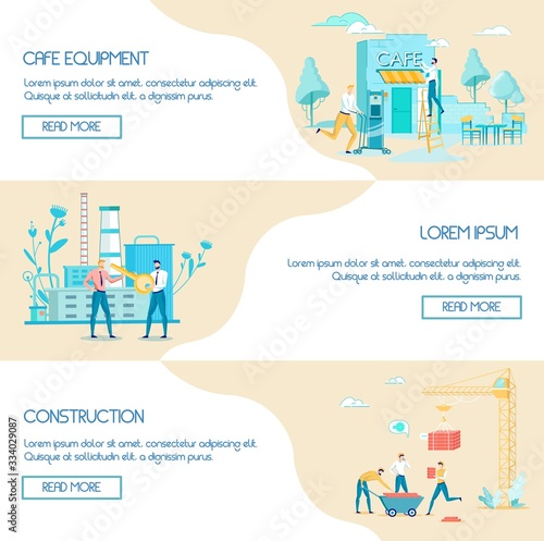Векторный набор горизонтальных баннеров концепции жилого строительства. Строитель, строящий дома, ремонт в квартире, элементы дизайна в плоском стиле.