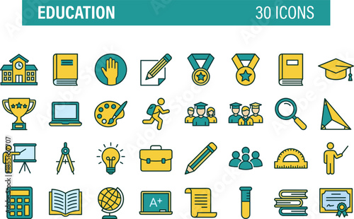Векторный набор иконок школьного образования в стиле тонкой линии. Школьный обеденный перерыв. Пользовательский интерфейс веб-сайта и значок мобильного веб-приложения. Иллюстрация контурного дизайна