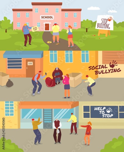 Векторный набор плакатов торгового рынка, баннеров в плоском стиле. Веранда, рынок, мясная лавка, элементы дизайна уличной еды в плоском стиле. Люди продают и покупают еду.