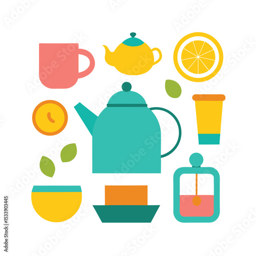 Векторный набор безалкогольных напитков. Свежее молоко, сочный лимонад, сладкая газировка и минеральная вода. Популярные безалкогольные напитки. Плоская конструкция