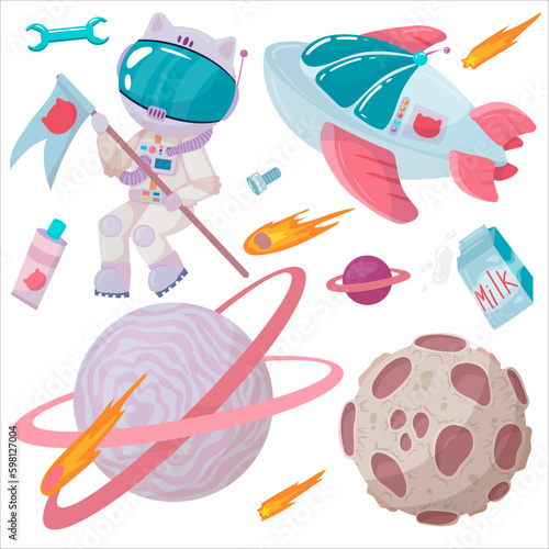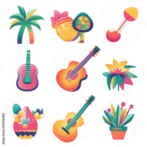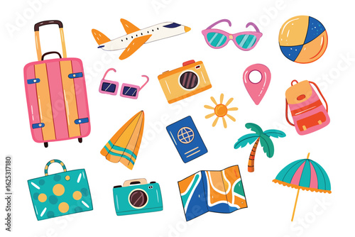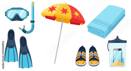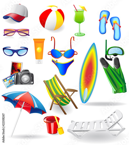Векторный набор летних объектов, изолированных на белом фоне. Элементы дизайна и иконки в плоском стиле. Концепция пляжного отдыха.