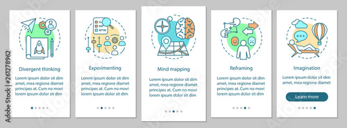 Векторный набор вертикальных баннеров инновационной концепции. Элементы концепции воображения, мотивации, вдохновения, видения и творчества. Тонкая линия плоских символов дизайна, иконки для меню сайта, печать.