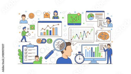 Векторный набор баннеров концепции продаж и маркетинга. Современная тонкая линия плоских дизайнерских символов, иконок для Интернета, маркетинга и печати.
