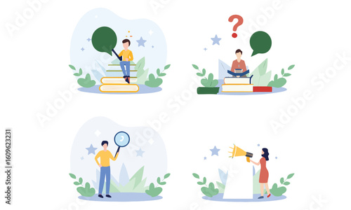 Векторная иллюстрация путешественников фотографируются с животными в зоопарке, фотографируют природу, делают селфи. Символы туристических людей, значки, выделенные на белом фоне. Дизайн в плоском стиле.