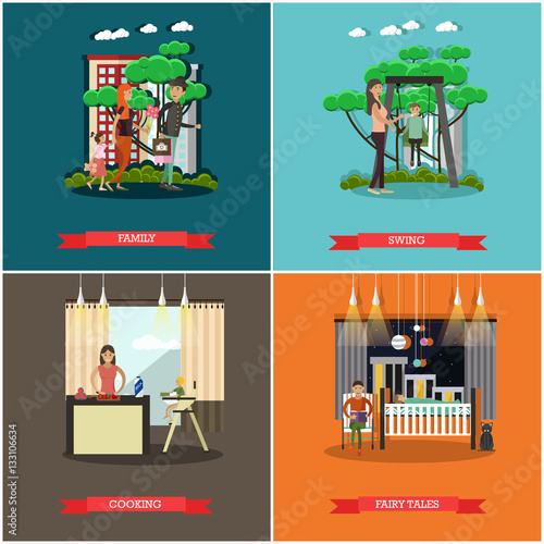 Векторный набор обучающих наружных плакатов, баннеров. Тренажер, скакалка, Обруч и элементы дизайна в плоском стиле для зарядки.