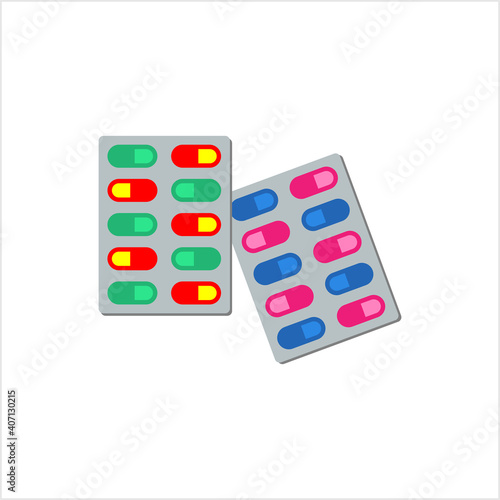 Векторный набор витаминных таблеток и таблеток 3D-моделей, изолированных на белом фоне. Иллюстрация медицины и медицинских препаратов. Макет и реалистичный шаблон для блистера лекарств. Разноцветные таблетки антибиотиков.