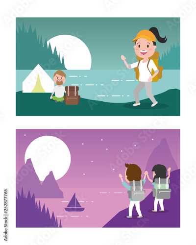 Векторный набор плакатов, баннеров с диким севером. Элементы дизайна яранги, оленеводов, каюров и Рыбаков в плоском стиле.