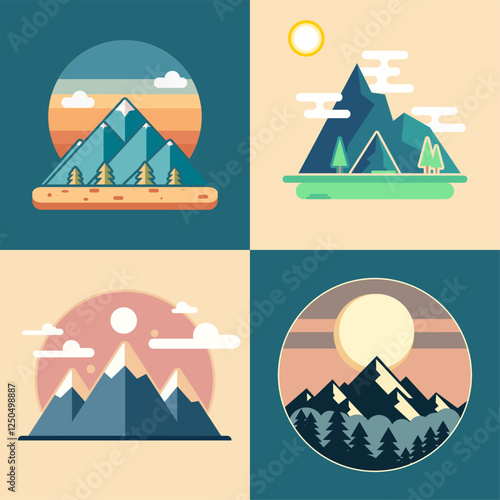 Векторный набор плакатов, баннеров с диким севером. Белый медведь, пингвины, Бубен и элементы дизайна костра в плоском стиле.